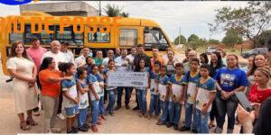 Alessandro Moreira entrega ônibus escolar e cheque de R$ 250 mil para construção de quadra