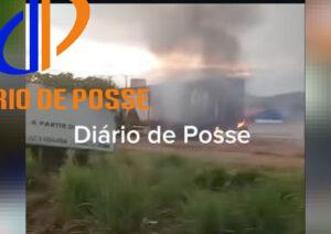 Carreta carregada com fardos de algodão pega fogo em Simolândia-GO Carreta carregada com fardos de