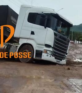 Carreta atola em trecho de obra de galeria fluvial em Simolândia-GO Uma carreta atolou e