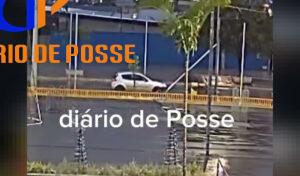 Poste de decoração natalina é atingido por na avenida JK, em Posse Um poste que