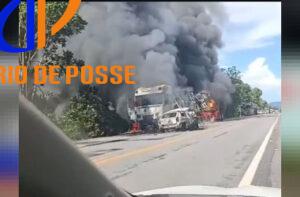 Grave acidente entre carro e carreta deixa veículos em chamas na BR-020, próximo a Vila
