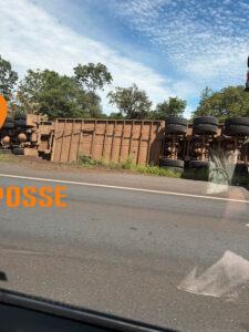 Carreta tomba na BR-020 entre Santa Maria e o trevo de Flores de Goiás Acidente