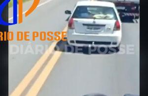 Carro é flagrado fazendo ultrapassagem perigosa na BR-020, próximo a Rodovilândia, em Posse-GO Um Fiat