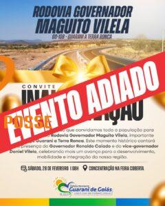 Inauguração da GO-108 é adiada em Guarani de Goiás A Prefeitura de Guarani de Goiás