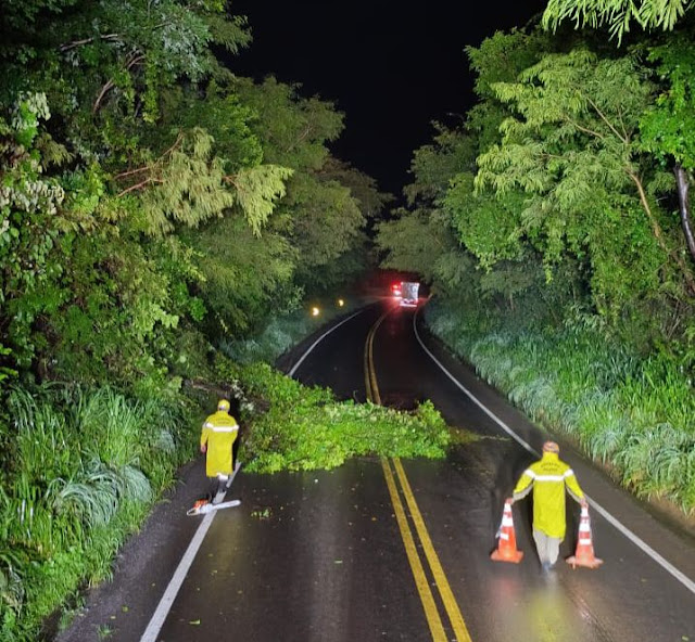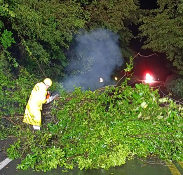 Os bombeiros trabalharam intensamente para remover as árvores e liberar a via, garantindo a segurança dos usuários da estrada. Imagens capturadas no local mostram os militares em ação, utilizando equipamentos especializados para cortar e remover os obstáculos.
