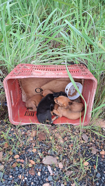 Filhotes foram encontrados na última rua do Residencial Valente, em Posse. Moradores estão cuidando, mas eles ainda precisam de um lar. Quem puder adotar ou ajudar, entre em contato com o pessoal da rua.