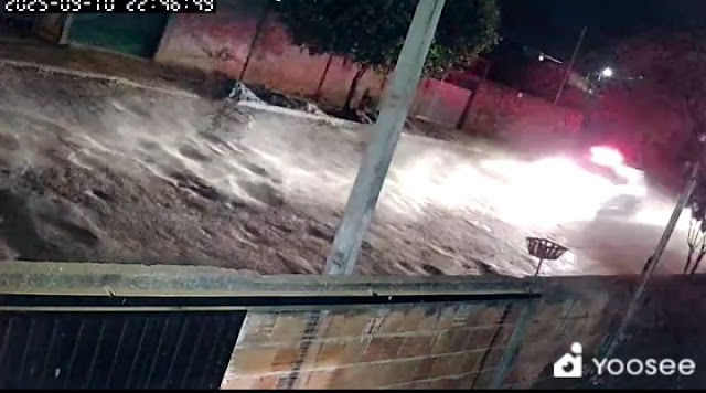 Na noite de quarta-feira (10/09), um vídeo de câmera de monitoramento registrou a fuga de um motociclista em alta velocidade em uma rua de Iaciara-GO.