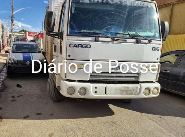 Caminhão colide com veículo da Saneago estacionado no centro de Iaciara