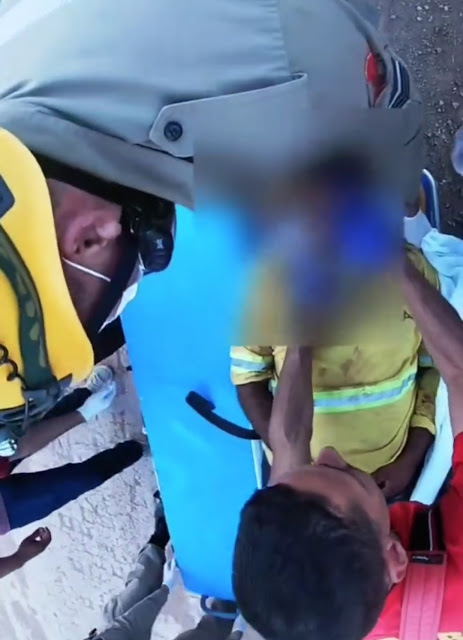 A vítima apresentou escoriações leves, dores no pé esquerdo e perna direita, mas estava consciente e com os sinais parcialmente preservados. Ela foi imobilizada e transportada com suporte básico de vida até o hospital.