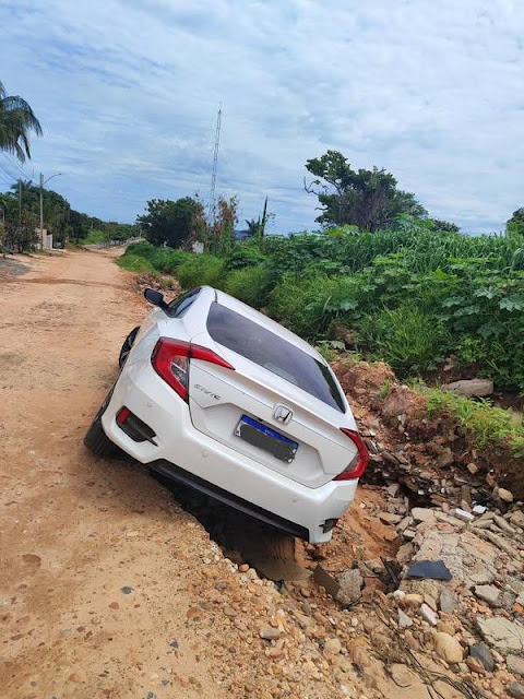 Hoje, 04 de Janeiro, a redação do Diário de Posse, recebeu imagens de um Honda Civic que caiu em uma cratera formada no local, evidenciando a gravidade da situação.