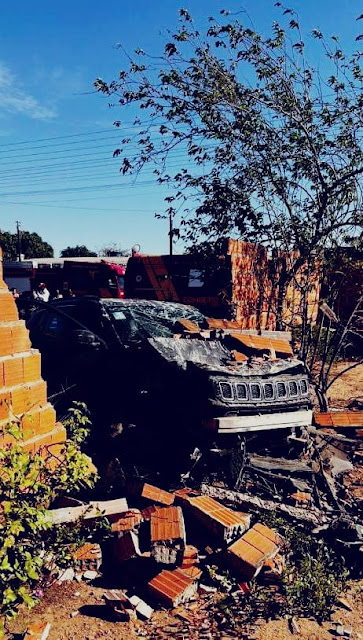Um veículo Jeep Compass, de cor preta, colidiu contra duas residências localizadas na Rua Amaro Pereira de Souza, setor Mãe Bela, causando danos estruturais significativos.