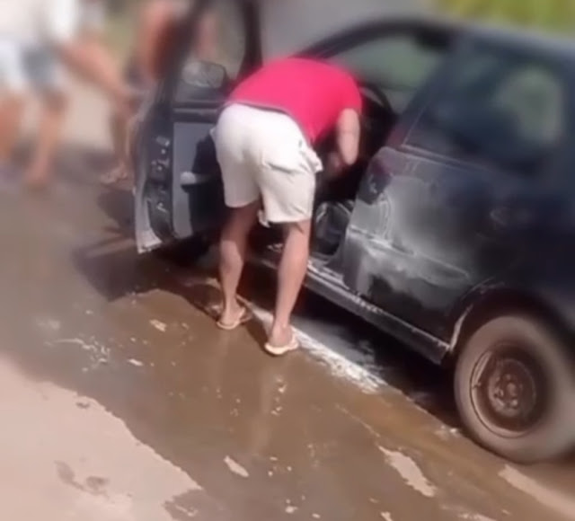 Moradores da rua Santo Antônio, em Iaciara (GO), apagaram um incêndio em um carro na tarde deste domingo (16/03).