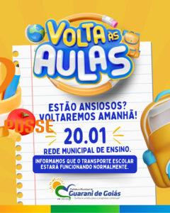 Rede municipal de Guarani de Goiás retoma aulas nesta terça-feira (20) Transporte escolar funcionará