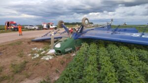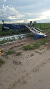 Avião agrícola capotou durante pouso em fazenda às margens da BR-020, em Correntina-BA