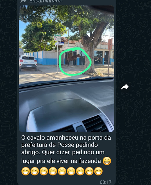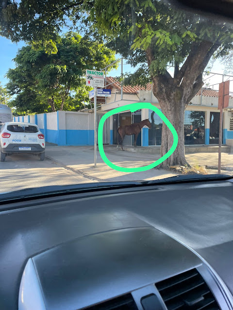 Uma foto de um cavalo na porta da prefeitura de Posse foi registrada na manhã dessa segunda-feira, 29 e ganhou muita repercussão.