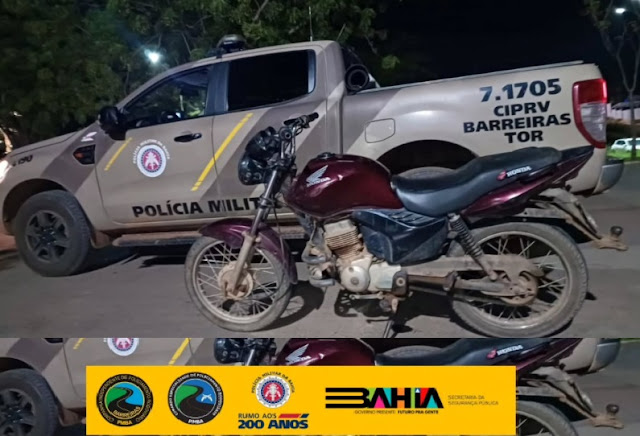 Na noite da última quinta-feira (26), uma guarnição da Companhia Independente de Polícia Rodoviária (CIPRv) de Barreiras realizava patrulhamento de rotina na rodovia BA-463, em São Desidério, quando identificou uma motocicleta com a lanterna traseira queimada.