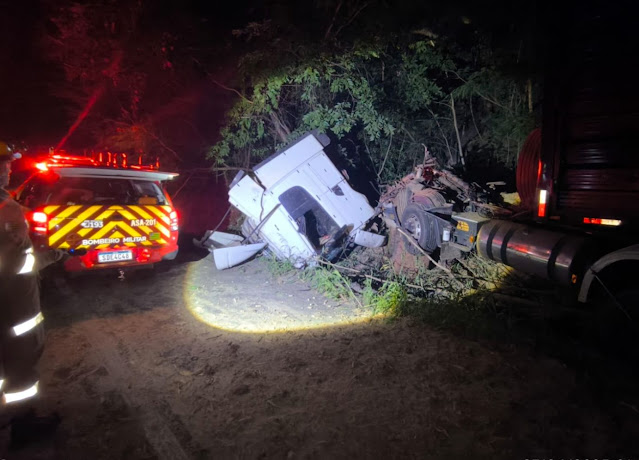 Com o impacto, o motorista do Scania, de 51 anos, foi arremessado para fora da cabine. Segundo os socorristas, ele estava consciente, mas apresentava múltiplas escoriações pelo corpo. Já o condutor do Mercedes-Benz, de 61 anos, também consciente, sofreu traumatismo craniano e várias escoriações.