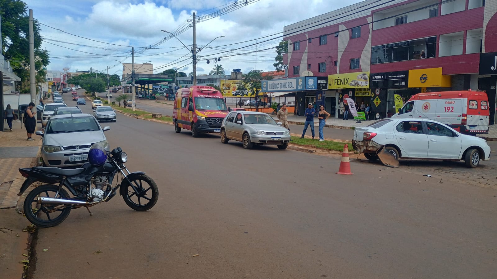 Na tarde de segunda-feira (09), por volta das 13h40, uma colisão envolvendo uma motocicleta e dois veículos de passeio foi registrada no bairro Formosinha, em Formosa (GO). A ocorrência mobilizou equipes do Corpo de Bombeiros Militar (19º BBM), Polícia Militar e Serviço de Atendimento Móvel de Urgência (SAMU).