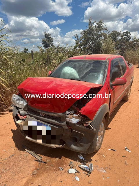 O acidente envolveu um veículo utilitário, que seguia sentido cidade de Sítio D’Abadia, e um carro de passeio, que trafegava no sentido oposto.