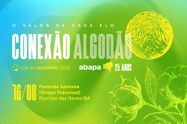 No próximo dia 16 de agosto, a Associação Baiana dos Produtores de Algodão (Abapa) realizará a quarta edição do seu Dia do Algodão. O evento, um dos mais concorridos da cadeia produtiva da fibra no Brasil, este ano integra o calendário de celebrações pelos 25 anos da entidade, completados em maio. O Dia do Algodão da Abapa segue indo além do formato tradicional – de dia de campo técnico –, para discutir os rumos da cotonicultura baiana, brasileira e mundial, sob um variado prisma temático, que vai desde inovação e sustentabilidade, até a conexão com o futuro.