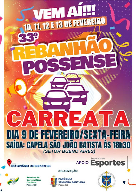 Amanhã, 09 de de Fevereiro, haverá uma carreata de anúncio do evento: