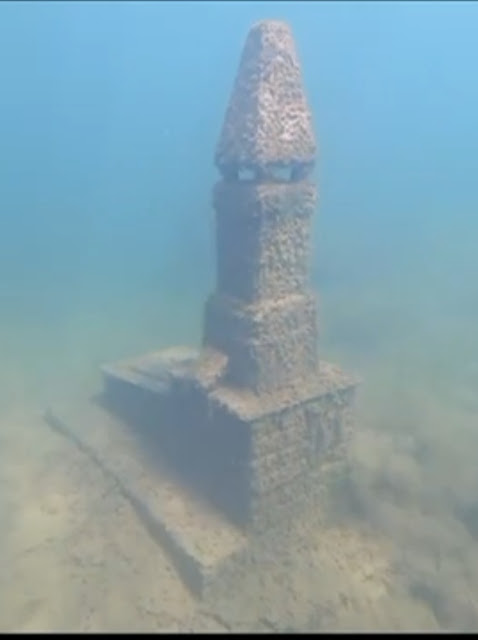 Os mergulhadores mostraram túmulos, muros e toda a estrutura do cemitério submerso dentro do lago.