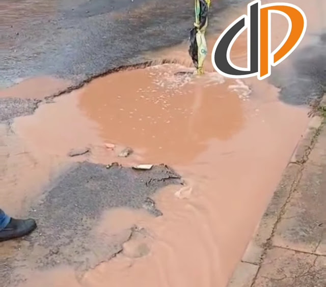 Nas imagens datadas de 29/11/2024, a água suja e barrenta jorra pela via, agravando o desgaste do asfalto e dificultando o trânsito. A situação persiste, como mostram registros mais recentes de 05/12/2024, onde a cratera permanece com água acumulada, indicando falta de medidas efetivas por parte das autoridades.