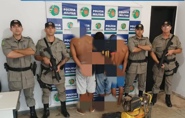 Ao se aproximarem do local do crime, localizaram um indivíduo menor de idade e após diligências as equipes localizaram os outros envolvidos e o esconderijo dos objetos furtados. No local, encontraram um compressor amarelo da marca Pressure na mesma rua do furto e, posteriormente, se deslocaram até o Setor Morada Nova, onde detiveram outros dois envolvidos.