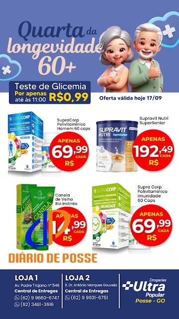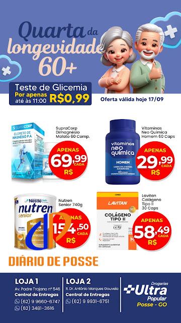 Nesta quarta-feira (17/09), as Drogarias Ultra Popular, em Posse (GO), promovem mais uma edição da “Quarta da Longevidade 60+”, uma campanha especial voltada ao público da melhor idade, com foco no cuidado com a saúde, bem-estar e qualidade de vida.