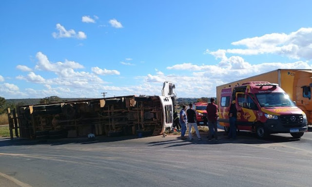 O acidente aconteceu por volta das 14h de terça-feira (18). Logo após, o 19º Batalhão do Corpo de Bombeiros Militar de Formosa foi acionado em razão de um tombamento de caminhão na BR-020, no trevo de Cabeceiras (GO).