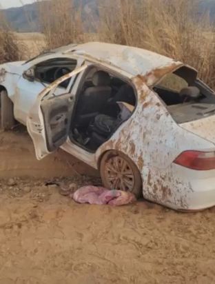 O acidente aconteceu em uma estrada de acesso ao local, distante aproximadamente 2 km. O condutor de um VW Voyage perdeu o controle da direção em uma estrada de chão e capotou o veiculo.