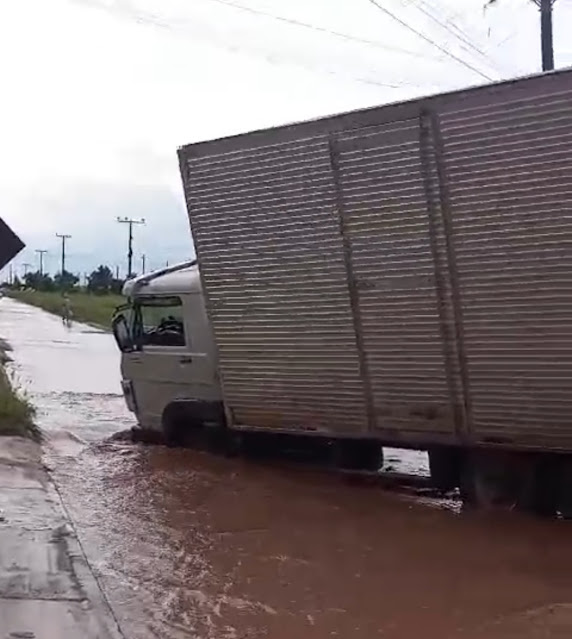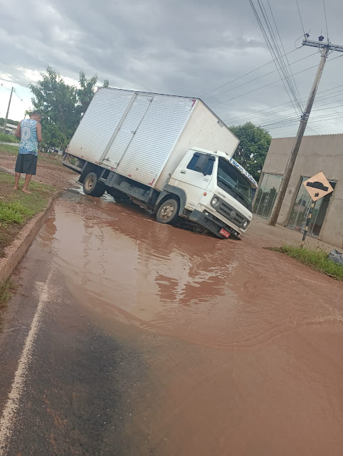 Hoje, Segunda- Feira, 18 de Março, um caminhão caiu dentro de um buraco no setor Mãe Bela, nas proximidades da Policlínica de Posse, na avenida JK.