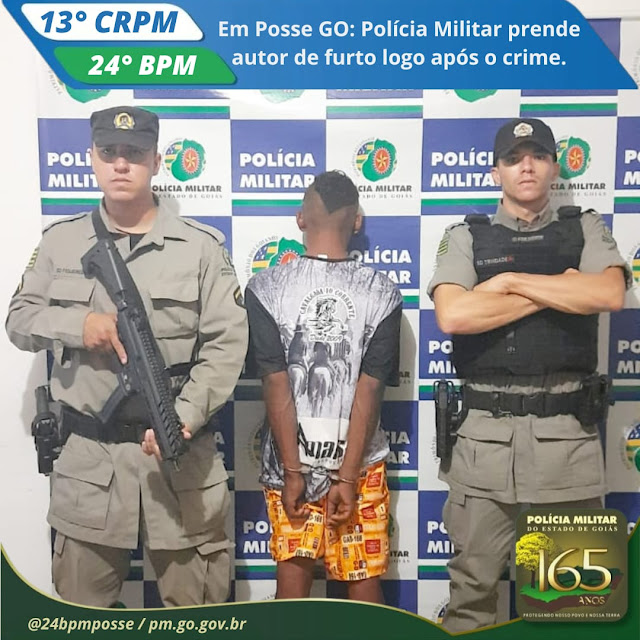No dia 21/03/2024 a Polícia Militar em Posse GO, prendeu o autor de um furto poucas horas após o crime ter sido relatado. O suspeito foi localizado pela equipe policial em frente a um supermercado, onde estava consumindo bebida alcoólica e ainda portava o telefone celular furtado.