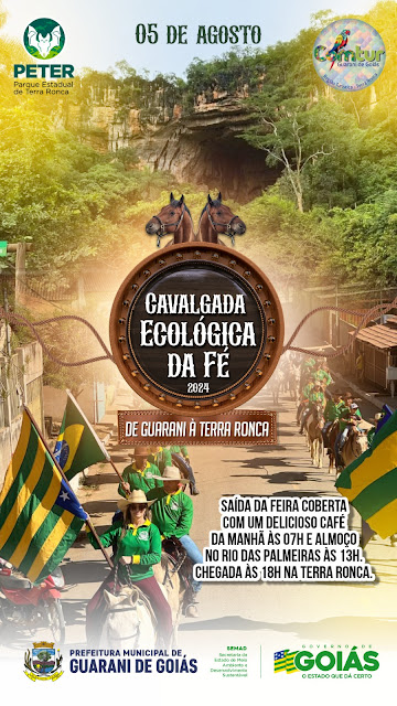 No dia 5 de agosto, a prefeitura de Guarani de Goiás, localizada no nordeste do estado, organizará a tradicional Cavalgada Ecológica da Fé, com destino às grutas de Terra Ronca.