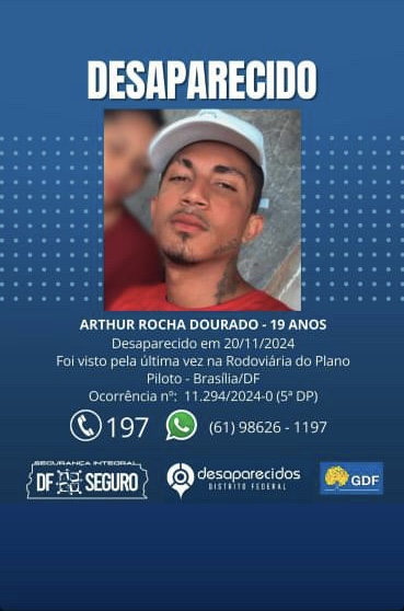 A família de Arthur Rocha Dourado, 19 anos, está em busca de informações sobre o paradeiro do jovem, que está desaparecido desde a última quarta-feira, 20 de novembro.