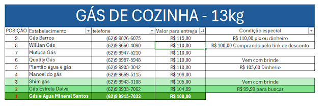 Veja lista do gás mais barato da cidade em ordem descrecente: