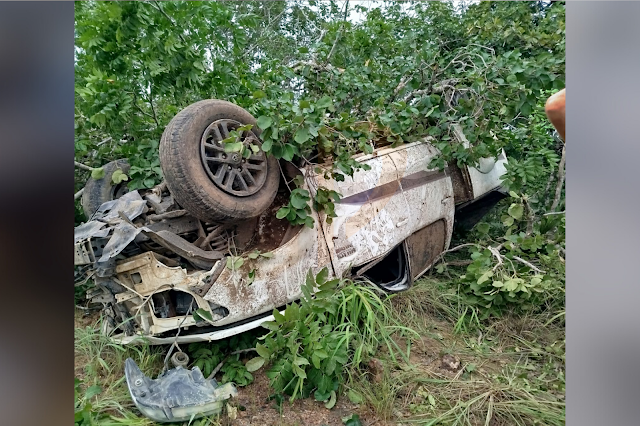 Uma caminhonete branca perdeu o controle e colidiu violentamente contra duas árvores, destruindo-as no impacto. Os ocupantes do veículo foram socorridos por amigos e encaminhados ao Hospital de Mambaí, relatando fortes dores.