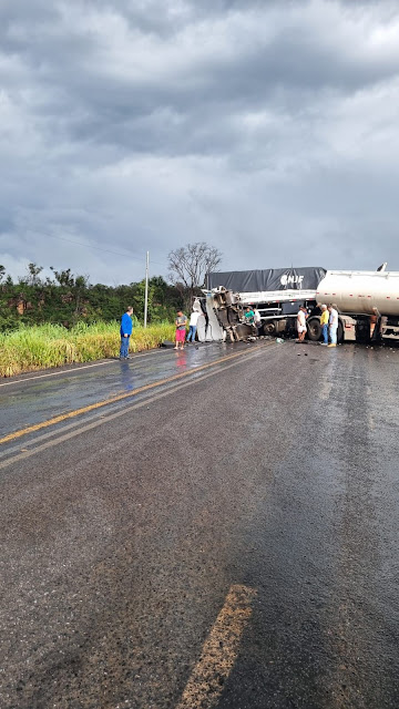 O motorista de uma das carretas, que seguia de Luís Eduardo Magalhães para Brasília, perdeu o controle na pista molhada, fazendo uma manobra em “L”. O veículo atingiu uma carreta tanque, que vinha na direção oposta. O impacto ocorreu entre os dois compartimentos da carreta tanque.