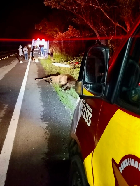 Infelizmente, o motociclista sofreu politraumatismos e faleceu no local. O animal também não resistiu ao impacto. O 4º Pelotão de Bombeiros foi acionado para prestar socorro, mas ao chegar, constatou o óbito do condutor.