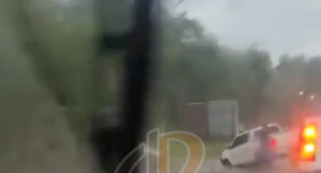 Segundo relatos, o condutor tentou realizar uma conversão à esquerda, mas, devido às dificuldades de visibilidade causadas pelas fortes chuvas, não percebeu o buraco na pista. Ainda não há informações sobre feridos.