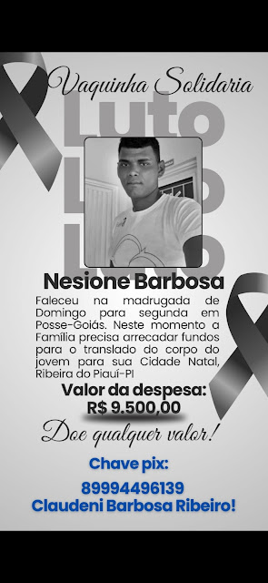 Chave pix para ajudar a família no translado do corpo: 89994496139 Claudeni Barbosa Ribeiro