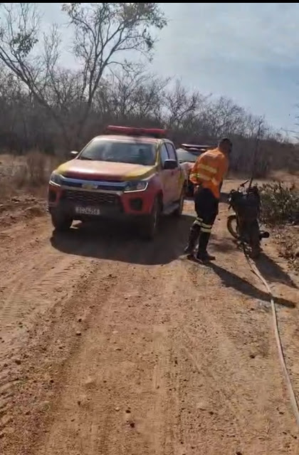 Durante a operação, as equipes localizaram uma motocicleta abandonada e uma mangueira preta, usada para iniciar focos de incêndio de forma criminosa. Pouco depois, um homem se apresentou como proprietário do veículo e afirmou estar realizando um fogo contrafogo, prática proibida por lei e sem autorização dos órgãos competentes.