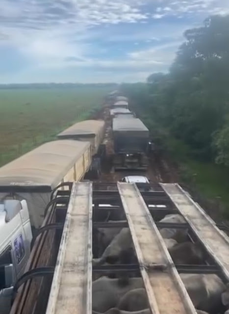 Nesta quinta-feira (21), foi registrada uma longa fila de veículos na via alternativa, com diversos carros e caminhões atolados no lamaçal, segundo relatos de testemunhas. A situação tem causado transtornos aos usuários, que dependem do trajeto para locomoção e transporte de mercadorias.