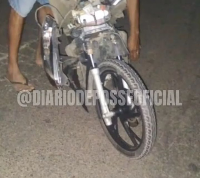 O animal estava preso por uma corda, que se esticou no momento da travessia, provocando a colisão. Com o impacto, o condutor foi arremessado para trás.