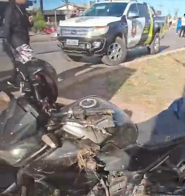 A motocicleta foi retirada do local e levada para a base da SUTRANS.