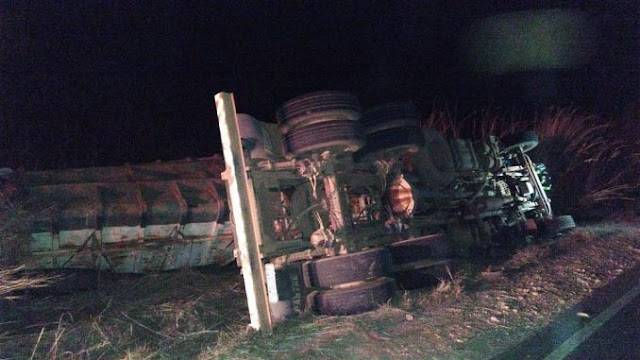 De acordo com informações do Blog do Braga, a carreta seguia pela via estadual em direção à BR-242 quando um carro de passeio tentou ultrapassar outro veículo no sentido contrário. Para evitar uma colisão frontal, o motorista da carreta desviou para a outra pista, mas acabou saindo da estrada, perdendo o controle do veículo, que tombou às margens da rodovia.