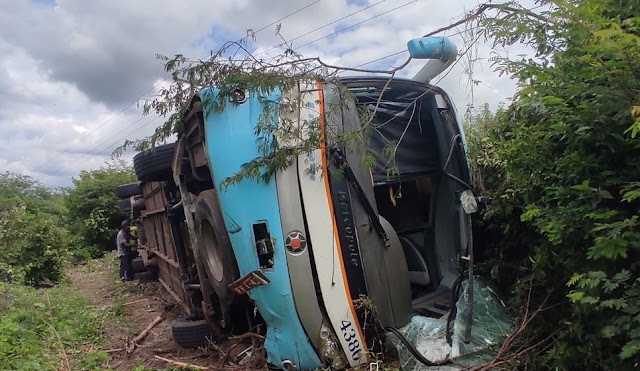 Na madrugada desta terça-feira (28), um ônibus da empresa Emtram tombou na BA-161, próximo à comunidade de Ribeirão, em Barra, no Oeste da Bahia, deixando três passageiros feridos. O acidente, registrado por volta das 3h, aconteceu em uma curva da rodovia e envolveu 14 passageiros.