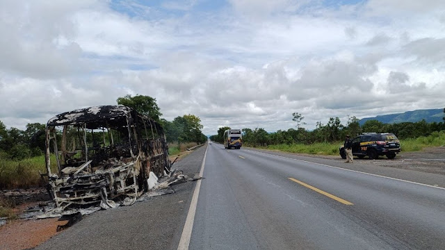 Um ônibus de viagem incendiou-se na manhã desta segunda-feira (6), no km 112 da BR-020, nas proximidades de Vila Boa de Goiás. Apesar da destruição total do veículo, felizmente, não houve feridos.