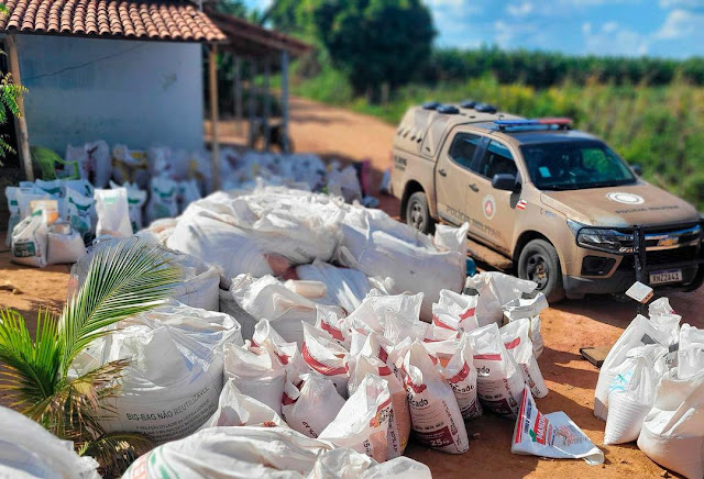 No último dia 12 de janeiro de 2024, a guarnição de serviço no Distrito do Rosário foi informada a respeito de um furto de 42 toneladas de adubos na Fazenda São José, município de Correntina. Em diligências, com o apoio do PETO e da 38ª CIPM, o motorista que transportou o adubo furtado foi identificado, e posteriormente a autora foi flagrada no Projeto Formoso, zona rural de Bom Jesus da Lapa, com 24 bergs de adubo.