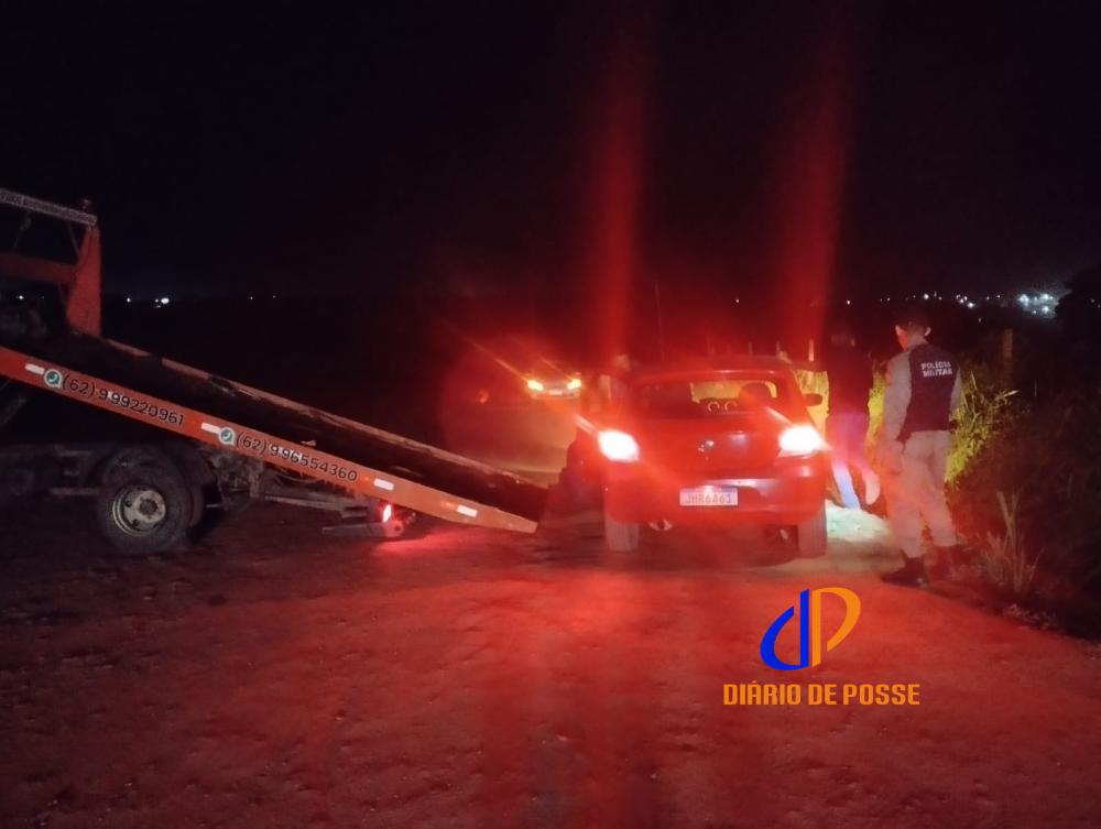 Uma equipe da Polícia Militar realizou o resgate de uma mulher e de uma criança após um carro cair em uma cratera em uma estrada de terra na tarde de segunda-feira (9), em Posse, no nordeste de Goiás.